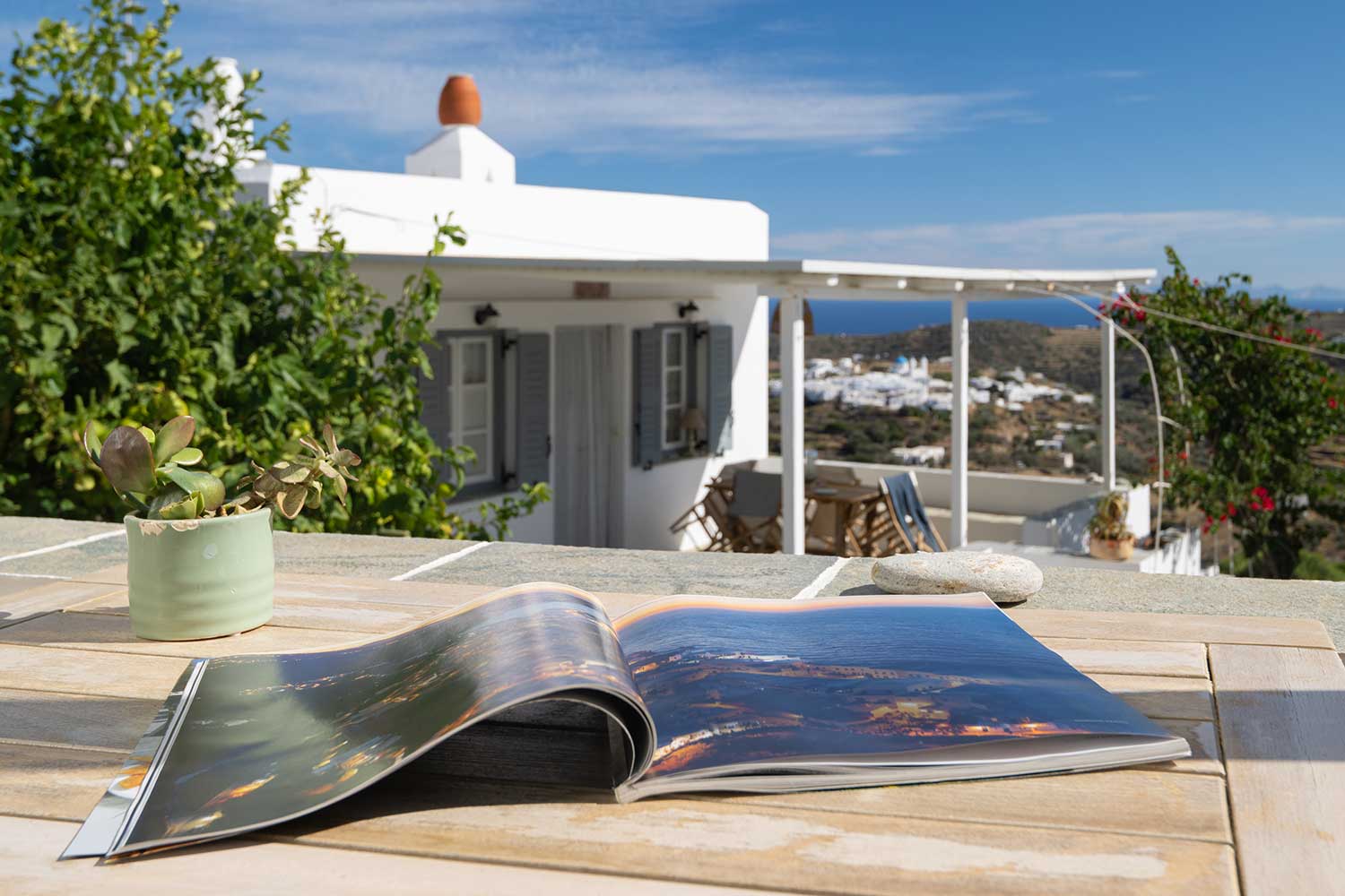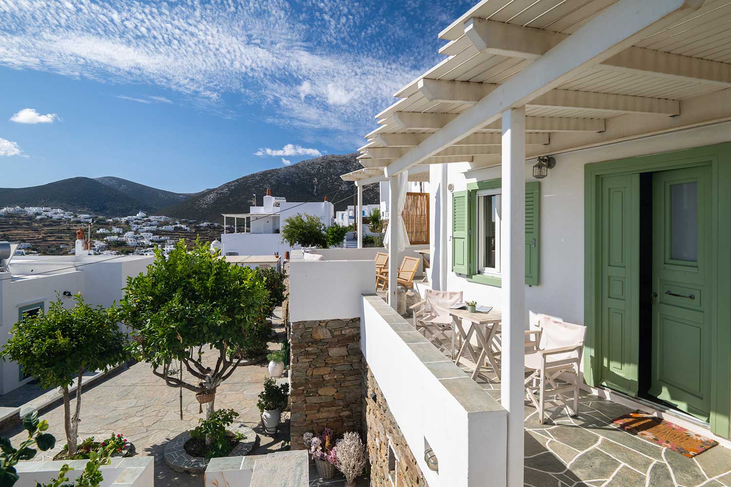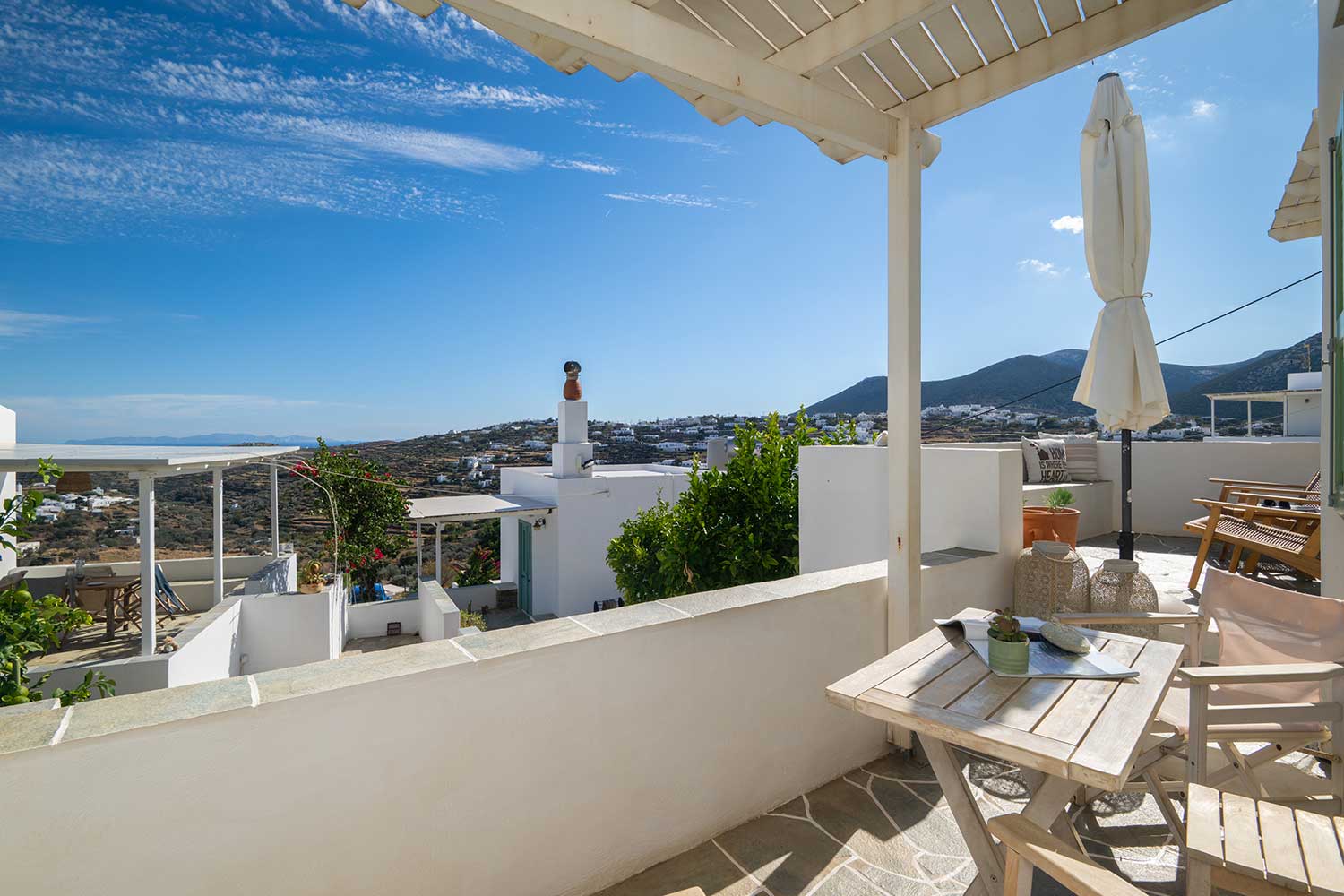 Το ιδιωτικό μπαλκόνι με την απεριόριστη θέα στο Αιγαίο και στους γύρω οικισμούς χαρίζει την ιδανική αίσθηση διακοπών στη Σίφνο.